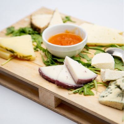 crema di pistacchio, mortadella, scamorza affumicata, granella di pistacchio