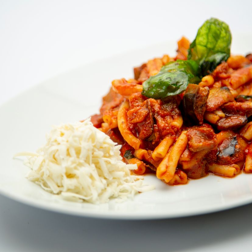 Panzotti con melanzane e scamorza su vellutata di pomodoro