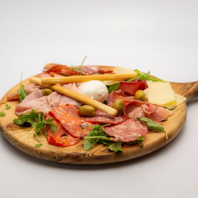 mozzarella, pomodoro fresco, rucola, bresaola, scaglie di grana